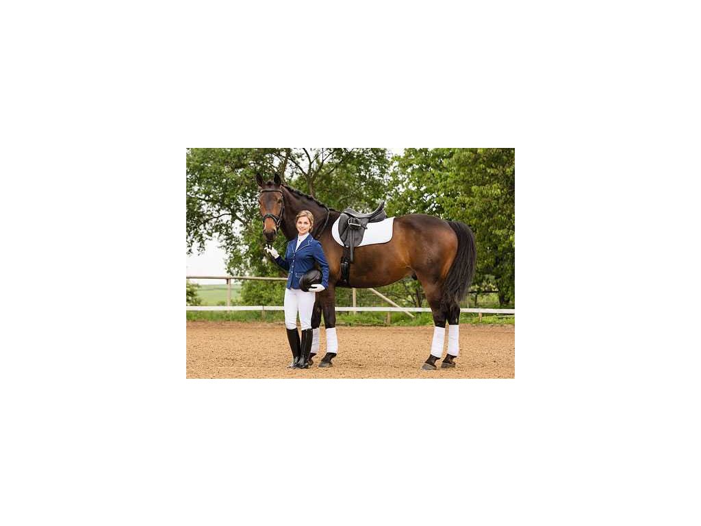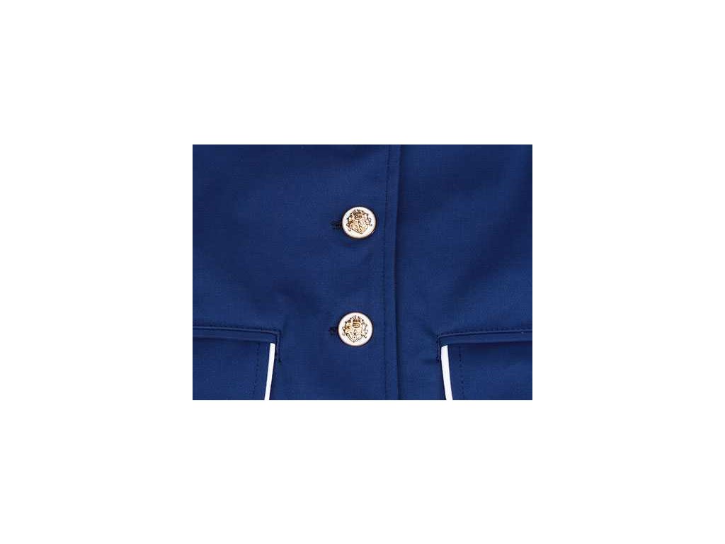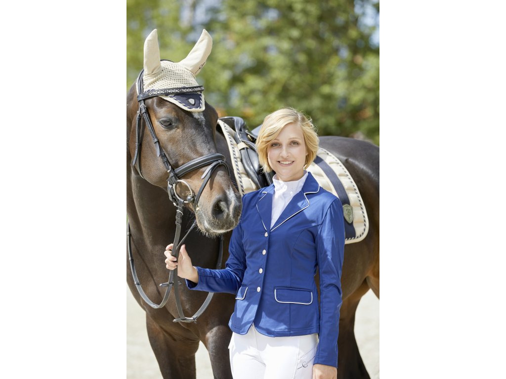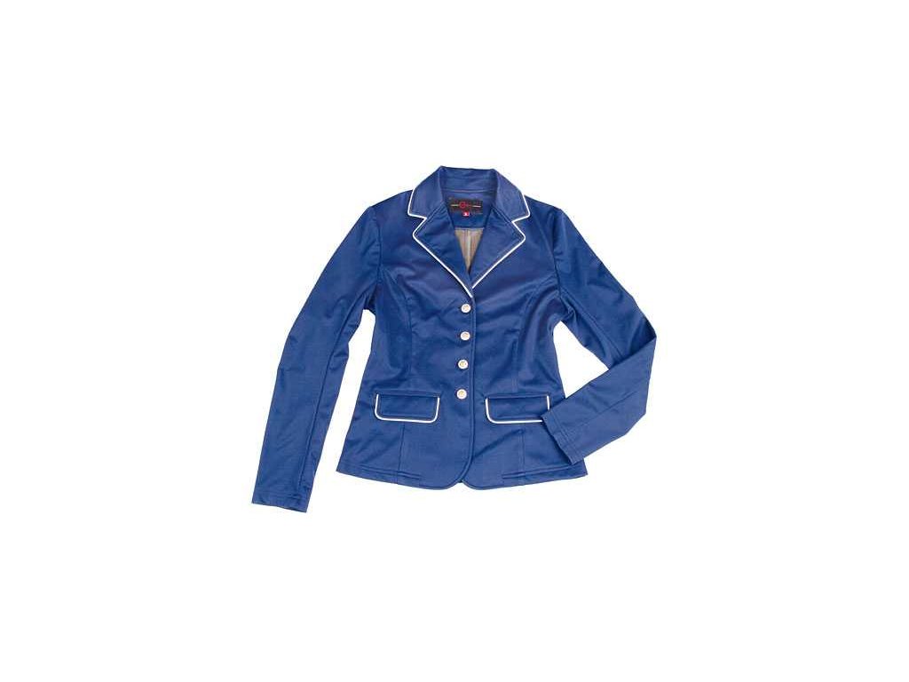 Dámské závodní sako s klasickým střihem. Sako je vyrobeno z dokonale pružného materiálu, takže jezdec není omezen v pohybu. Na elegantnosti saku dodává kontrastní lemování okolo límce a klop kapes.• elegantní, krátký střih