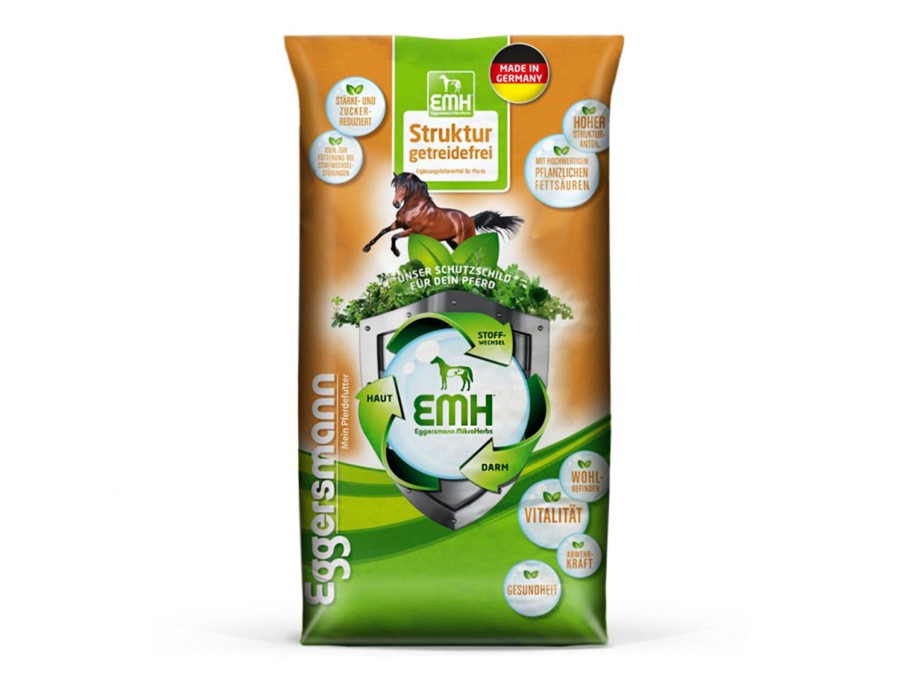 Slunečnicová semínka a rýžové otruby poskytují esenciální mastné kyseliny. Vojtěška je dobře známa pro hodnotnou a velmi kvalitní bílkovinu, proto je ideální pro zásobování těla správným množstvím aminokyselin na podporu svalové hmoty. Skvělá jablečná dužnina poskytuje cenné pektiny. EMH Struktur müsli bez obilovin přispívá k lepší kvalitě života vašeho koně.
