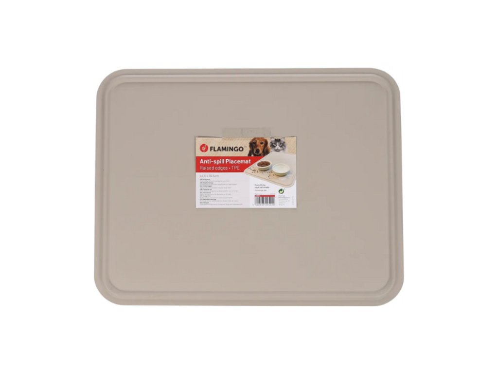 Plastová podložka pod misky s vodou a krmením Flamingo pro vaše domácí mazlíčky. Zvýšený okraj zabraňuje rozlévání krmiva, nebo vylití vody po okolí. Materiál podložky je snadno omyvatelný a udržitelný, lze ho umýt v myčce na nádobí.