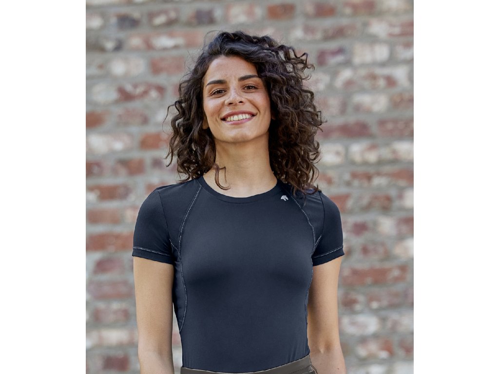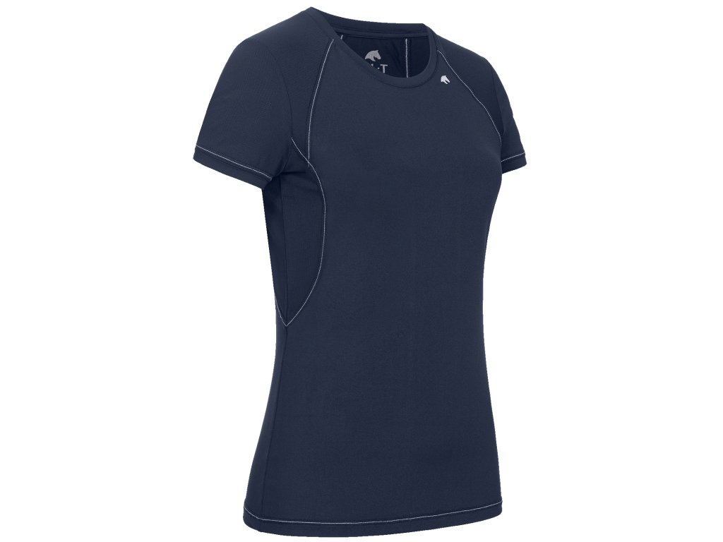 Dámské funkční tričko projmutého střihu z prodyšného materiálu a síťovým (mesh) materiálem na ramenou a bocích pro příjemné jezdecké a sportovní aktivity v teplých dnech.