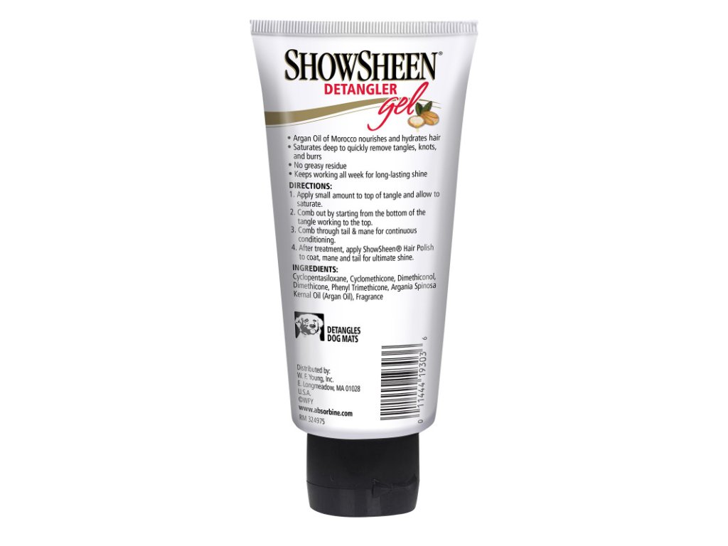 Absorbine ShowSheen Detangler Gel je produkt určený pro koně, který slouží k uvolnění silně zamotaných žíní, ochraně srsti a Absorbine ShowSheen Detangler Gel se snadno nanáší a rychle působí. Stačí ho aplikovat na zamotané části ocasu či hřívy a jemně rozčesat.