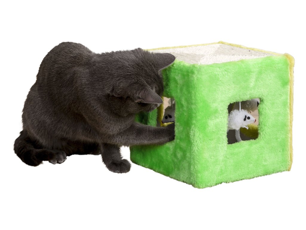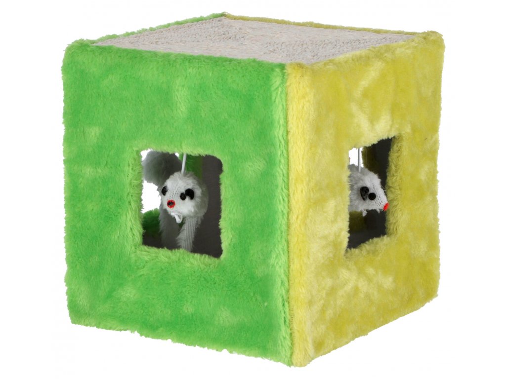 Hračka pro kočky sisalová kostka s myškami 20x20x20cm, zeleno/žlutá