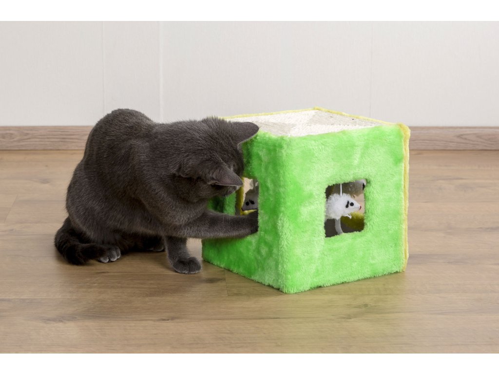 Hračka pro kočky sisalová kostka s myškami 20x20x20cm, zeleno/žlutá• z lepeného sisalu a plyše