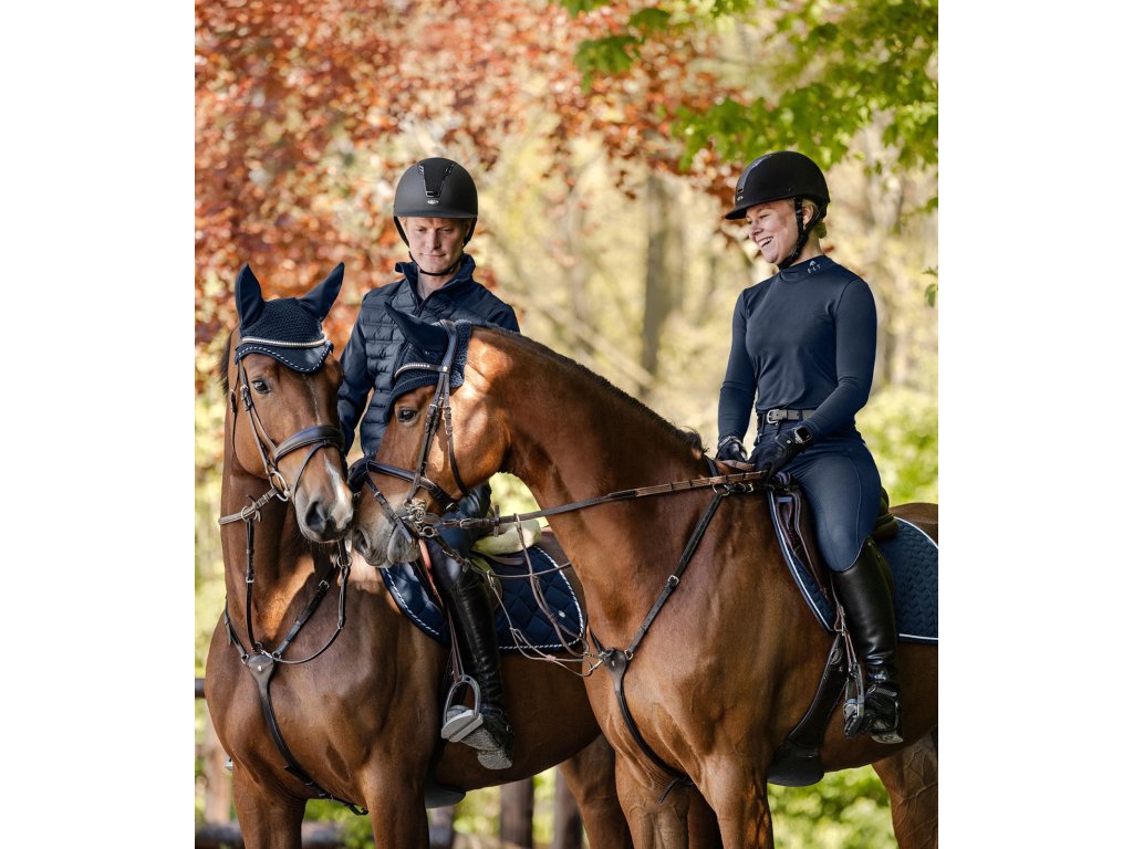 Jezdecká helma SWING H22 Shine zaujme svým elegantním designem použitím třpytivého dílu v kombinaci s matnou černou barvou. Díky nastavitelnému systému velikostí se dokonale přizpůsobí tvaru hlavy, zatímco integrované ventilační kanály zajišťují optimální cirkulaci vzduchu.