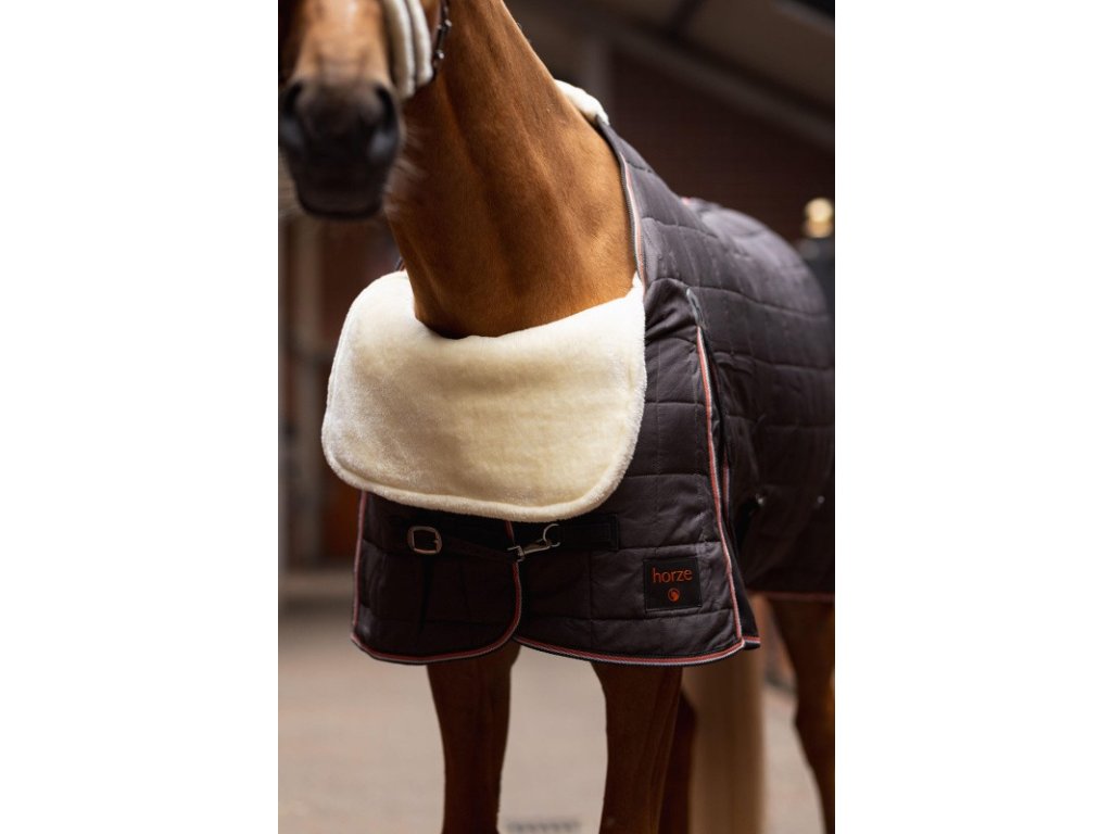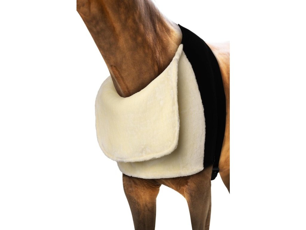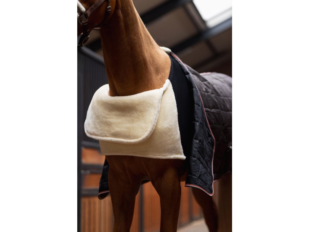Elastická pletená vesta pro koně s měkkým syntetickým beránkem poskytuje extra ochranu a pohodlí pod stájovou dekou, chrání citlivá místa koně jako kohoutek a plece před otlaky a odřením.- Komfortní design: Syntetická kožešina v přední části dodává měkkost a snižuje riziko odřenin.
