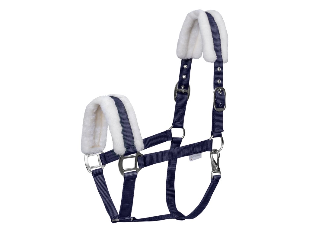 Ohlávka s měkkým podložením ze syntetické kožešiny na čelence a nánosníku.