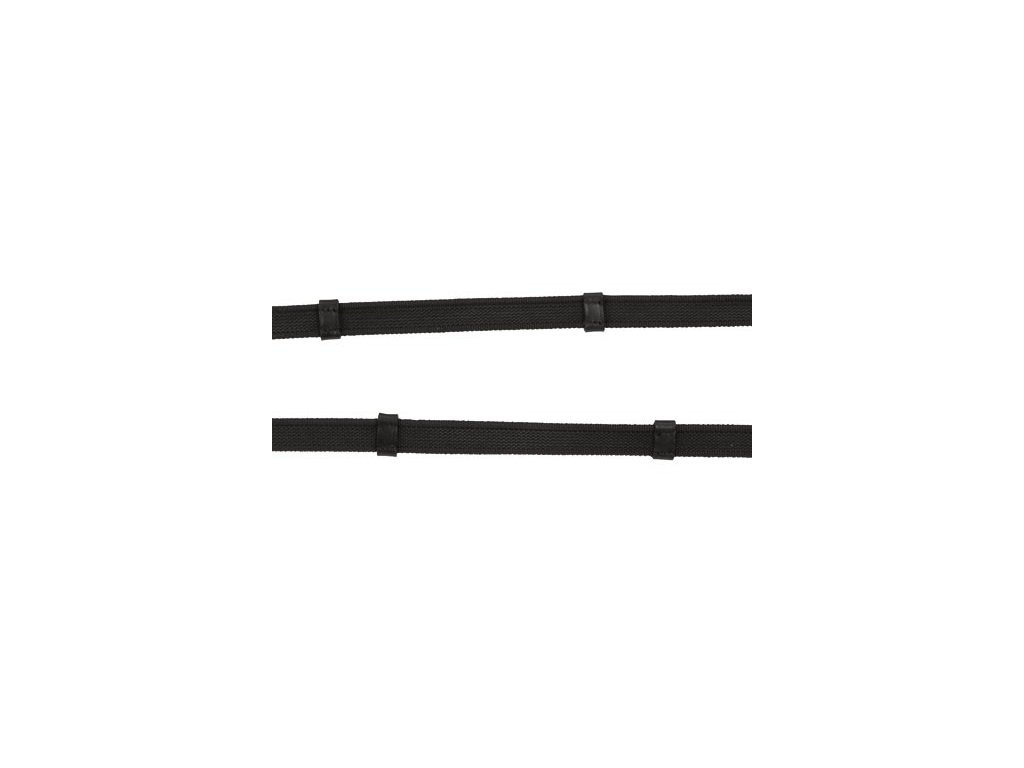 Kožené otěže se zarážkami protkané protiskluzovou gumou. Zapínání na háčky. Délka 280cm.Doplňkové parametry
