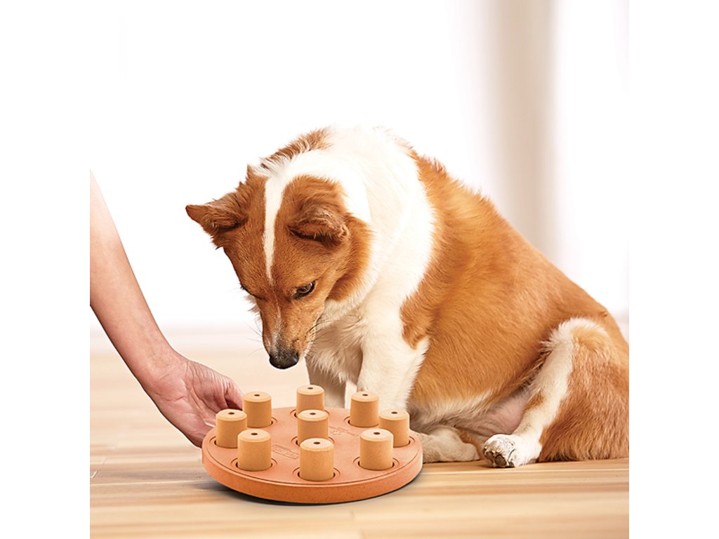 Zábavný hlavolam Smart je vyrobený ze směsi odolného plastu a dřevitých vláken, je odolnější než dřevo, snadný na údržbu a netříští se jako dřevo, když náhodou pejsek do hlavolamu kousne. Pamlskový hlavolam je skvělý na odměňování a krmení vašeho pejska, schovat do něj můžete jak granule, tak kousky masa. Pro hltavé nebo věčně hladové pejsky využijte hlavolam i k pomalému jedení. Pravidla hlavolamu a hry je jednoduchá - pejsek se při hře učí, jak odklopit kolíky a dostat se k oblíbeným a voňavým pamlskům. Osvojuje si tak nové dovednosti a užívá si vaší společné hry. Velikost: průměr 23 cm, výška 6cm.