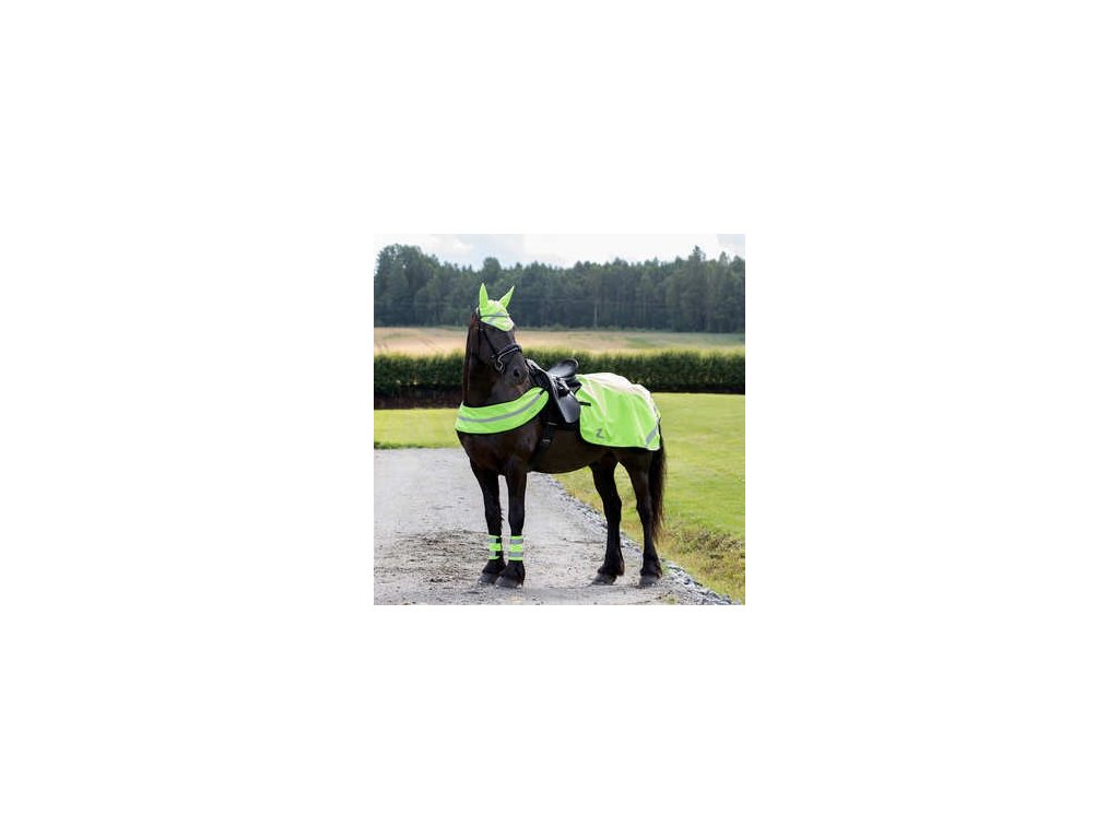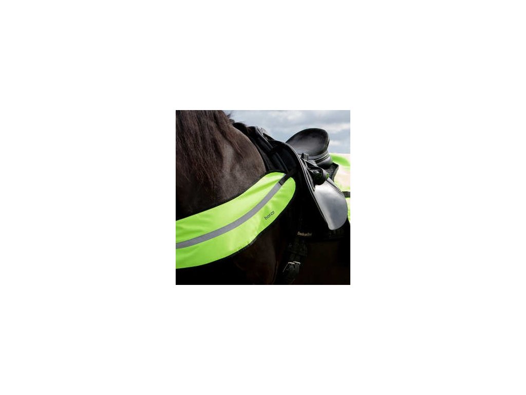 Široký neonově žlutý poprsák s reflexním pruhem pro bezpečnější jízdu za snížené viditelnosti- jednoduché upevnění do kroužků sedla pomocí suchého zipu