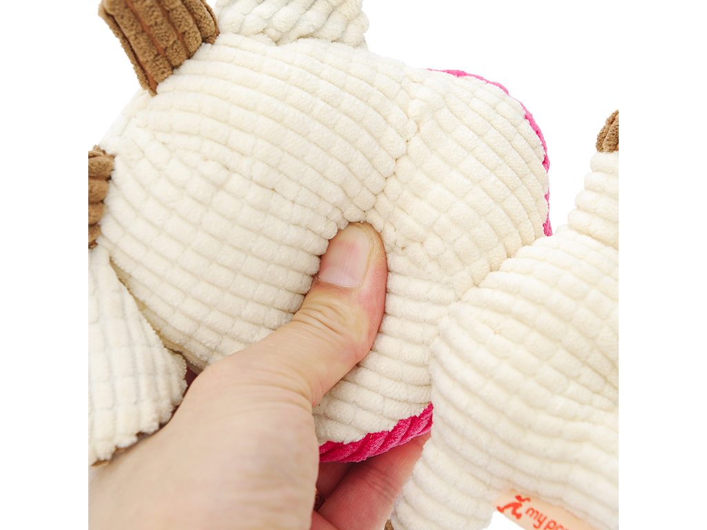 Vybíráte plyšovou hračku pro štěňátko s mléčnými zoubky, nebo mazlivého pejska? Reedog plush cow bude tou správnou volbou. Hebká a měkoučká plyšová hračka ve tvaru krávy je vybavena přečuhujícími částmi, jako jsou nohy, nebo ruce pro kousání a žužlaní Vašich psích kamarádů. Pro více zábavy je hračka vybavena pískátkem.