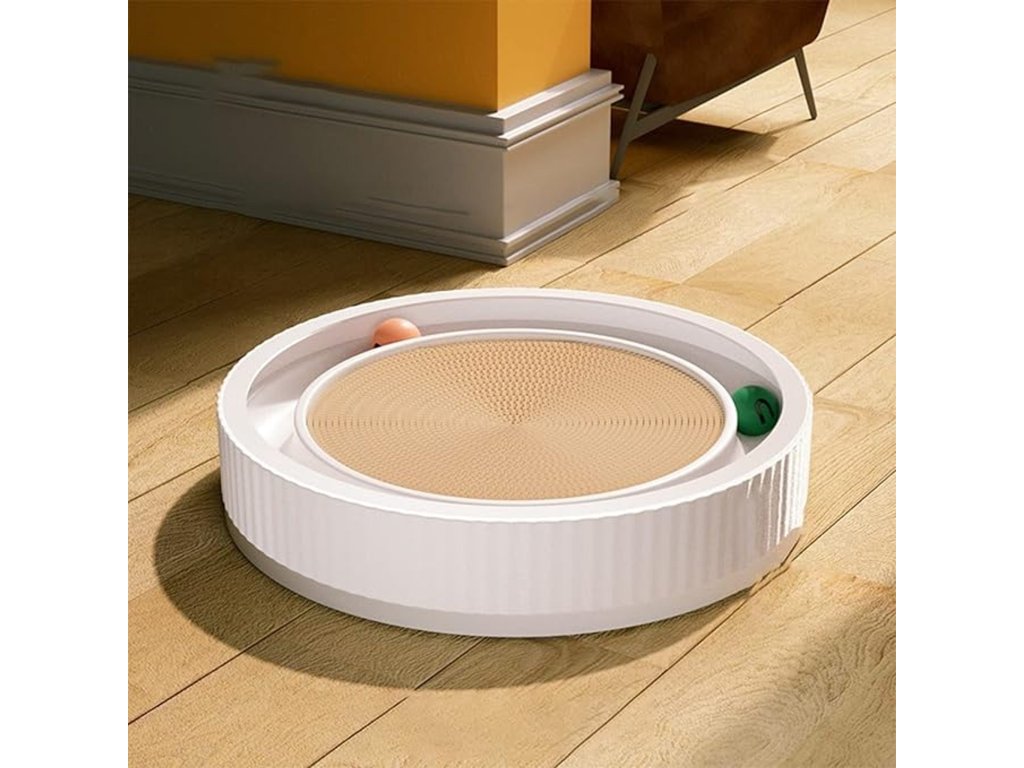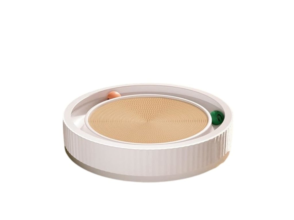Toto odolné škrabadlo pro kočky lze použít jako škrabadlo, jako odpočívadlo i jako zábavnou hračku. Uspokojte přirozený instinkt kočky a zároveň snižte riziko poškození koberců, záclon a nábytku. Tunel po obvodu škrabadla obsahuje barevné míčky, které se točí v kruhu a kočička se je snaží chytit. Škrabadlo je vyrobeno z odolného tvrzeného kartonu.
