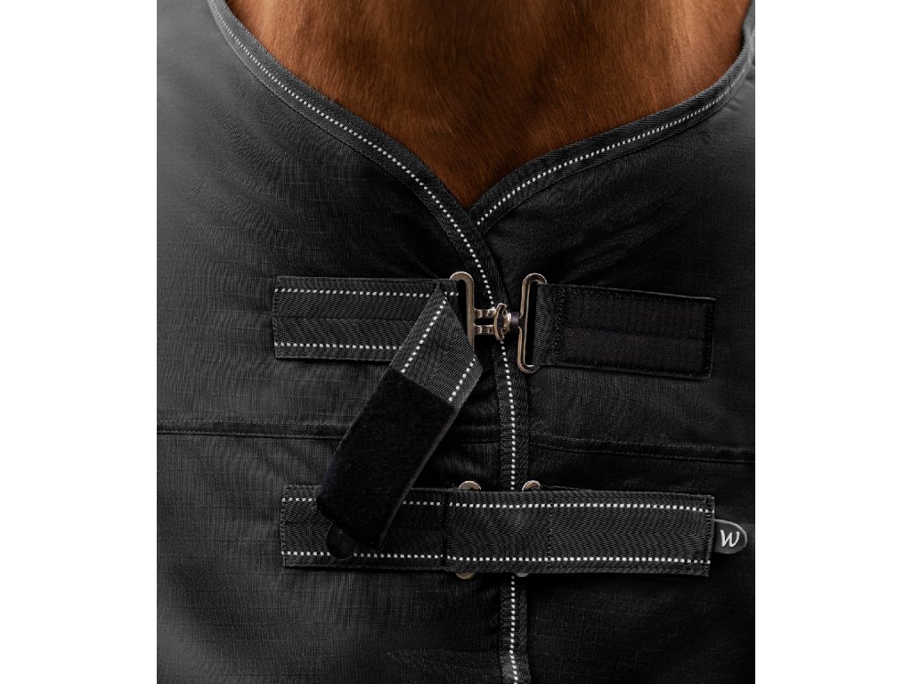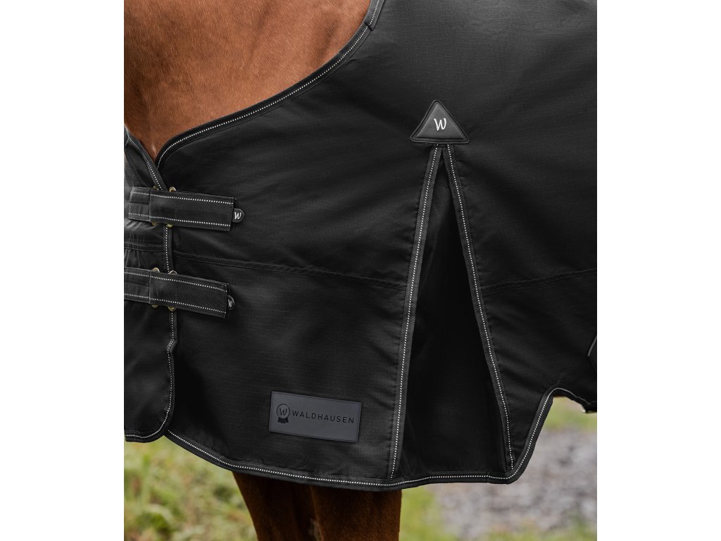 S Waldhausen Arctic venkovní dekou si můžete být jisti, že vaše koně budou optimálně chráněni i za nepříznivých podmínek. Antibakteriální vnitřní podšívka zajišťuje maximální komfort. Dvojité T-přední zapínání poskytuje bezpečné uchycení a zabraňuje sklouznutí. Lem s reflexními prvky zvyšuje viditelnost za špatných světelných podmínek. Prostorný klín na pleci umožňuje neomezenou volnost pohybu, zatímco křížové popruhy přidávají na stabilitě. Vnější materiál 600 Denier poskytuje odolnou bariéru proti větru a dešti.