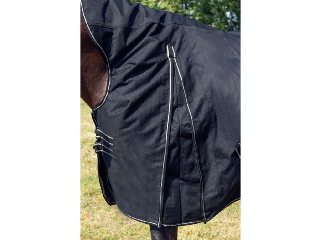 - Praktické detaily: Malá vnitřní kapsička na teploměr (součást balení) umožňuje monitorovat teplotní komfort koně.
