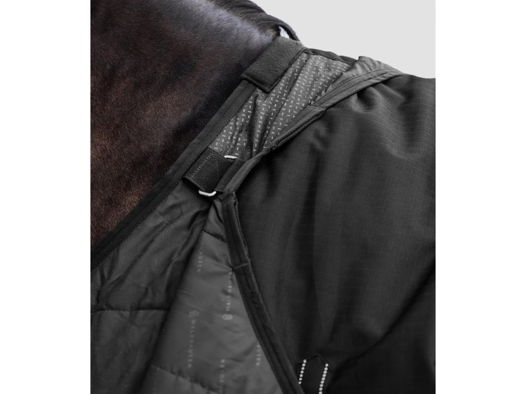 Výběhová zimní deka Nordic se zateplením 300 g zajistí vašemu koni optimální komfort i během chladných dnů. Dvojité T-přední zapínání zaručuje skvělé přizpůsobení, zatímco lem s reflexními prvky zvyšuje viditelnost za horších světelných podmínek. Klín na pleci poskytuje volnost pohybu a 600 Denier ripstop vnější materiál zajišťuje odolnost, díky které zůstane váš kůň v teple a suchu.- 600 Denier Ripstop